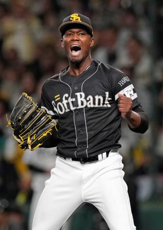 6回を投げ終え、雄たけびを上げるソフトバンクのモイネロ=甲子園