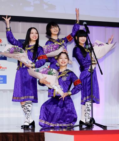 「第54回ベストドレッサー賞」の発表・授賞式でポーズをとる「新しい学校のリーダーズ」のメンバー=26日午後、東京都渋谷区