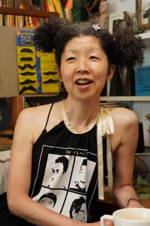 行きつけのカフェでピアノを弾く稲垣えみ子=東京都目黒区のUnder the mat