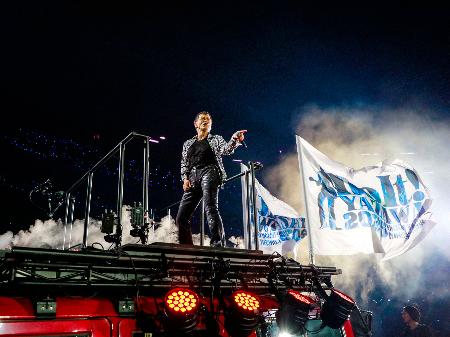 大型車ハマーに乗って会場内を一周する矢沢永吉=東京ドーム(撮影・HIRO KIMURA)
