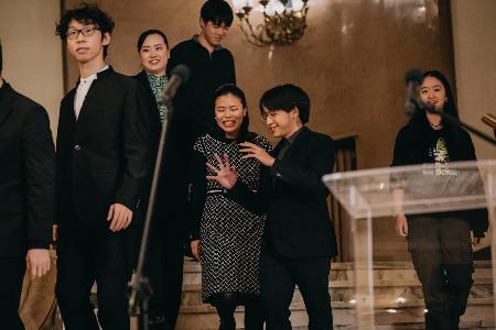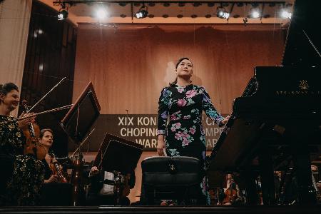 「第19回ショパン国際ピアノ・コンクール」で優勝を決め、喜びの言葉を語るエリック・ルー=2025年10月21日、ワルシャワ((C)K.Szlezak/NIFC)