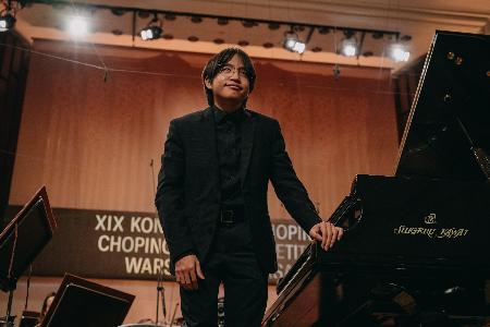 「第19回ショパン国際ピアノ・コンクール」で優勝を決め、喜びの言葉を語るエリック・ルー=2025年10月21日、ワルシャワ((C)K.Szlezak/NIFC)