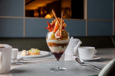 アルマーニの「紅玉 イチジク キャラメル 赤ワインのパフェ」(提供写真)