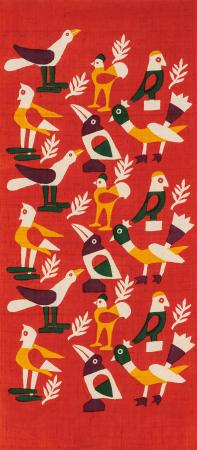 柚木沙弥郎「小鳥」(1992年、型染、紬 坂本善三美術館蔵)(提供写真)