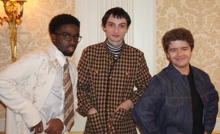 インタビューに応じた左からケイレブ・マクラフリン(ルーカス役)、フィン・ウルフハード(マイク役)、ゲイテン・マタラッツォ(ダスティン役)