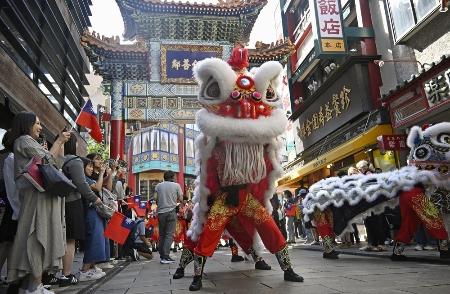 日中間の交流行事延期が相次ぐ中、中華料理、三国志、キングダムが対中感情を支える柱とするSNS投稿が目を引いた。写真は横浜中華街を練り歩く獅子舞=10月10日