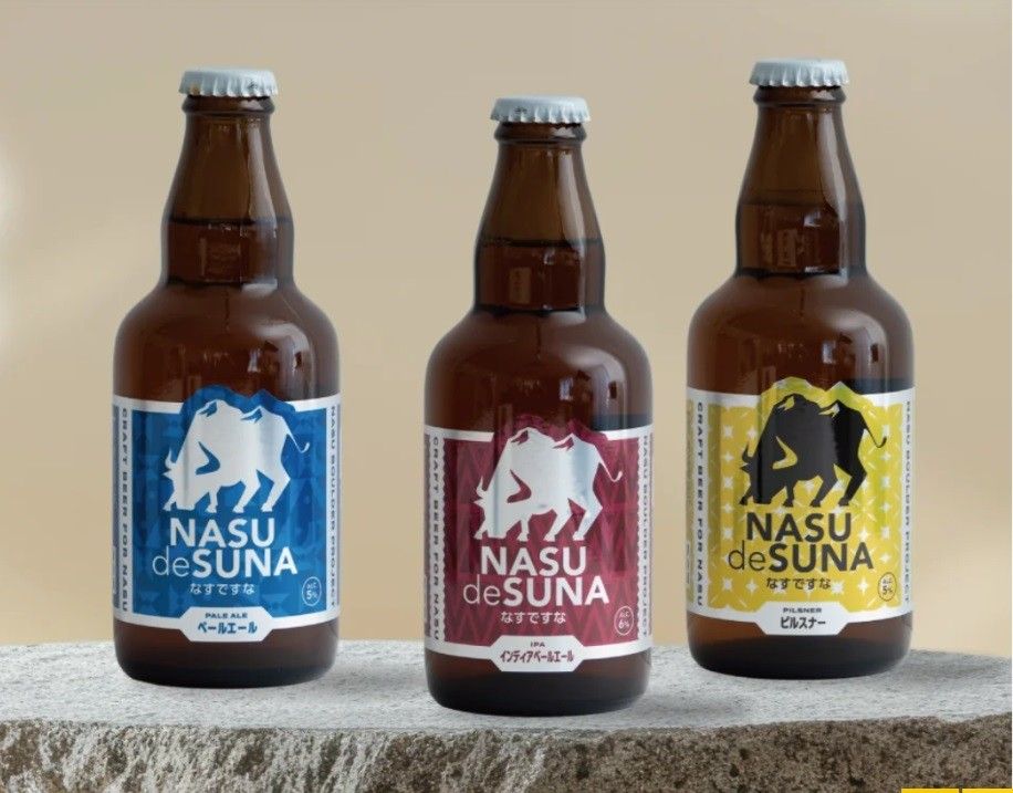 銀賞の「なすですなペールエール」、銅賞の「なすですなIPA」「なすですなピルスナー」(左から)