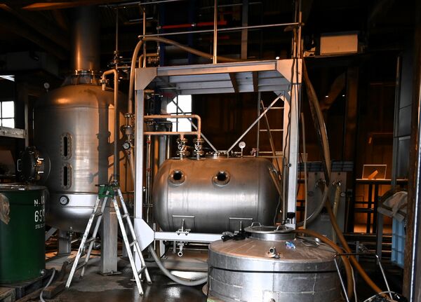 独自に開発した常圧から低圧まで対応できる日光街道小山蒸溜所の蒸留器=小山市
