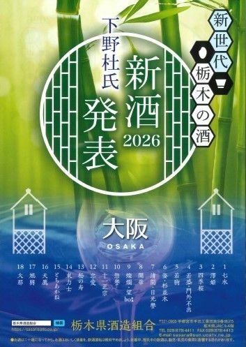 「新世代栃木の酒 下野杜氏 新酒発表2026大阪」のフライヤーデザイン