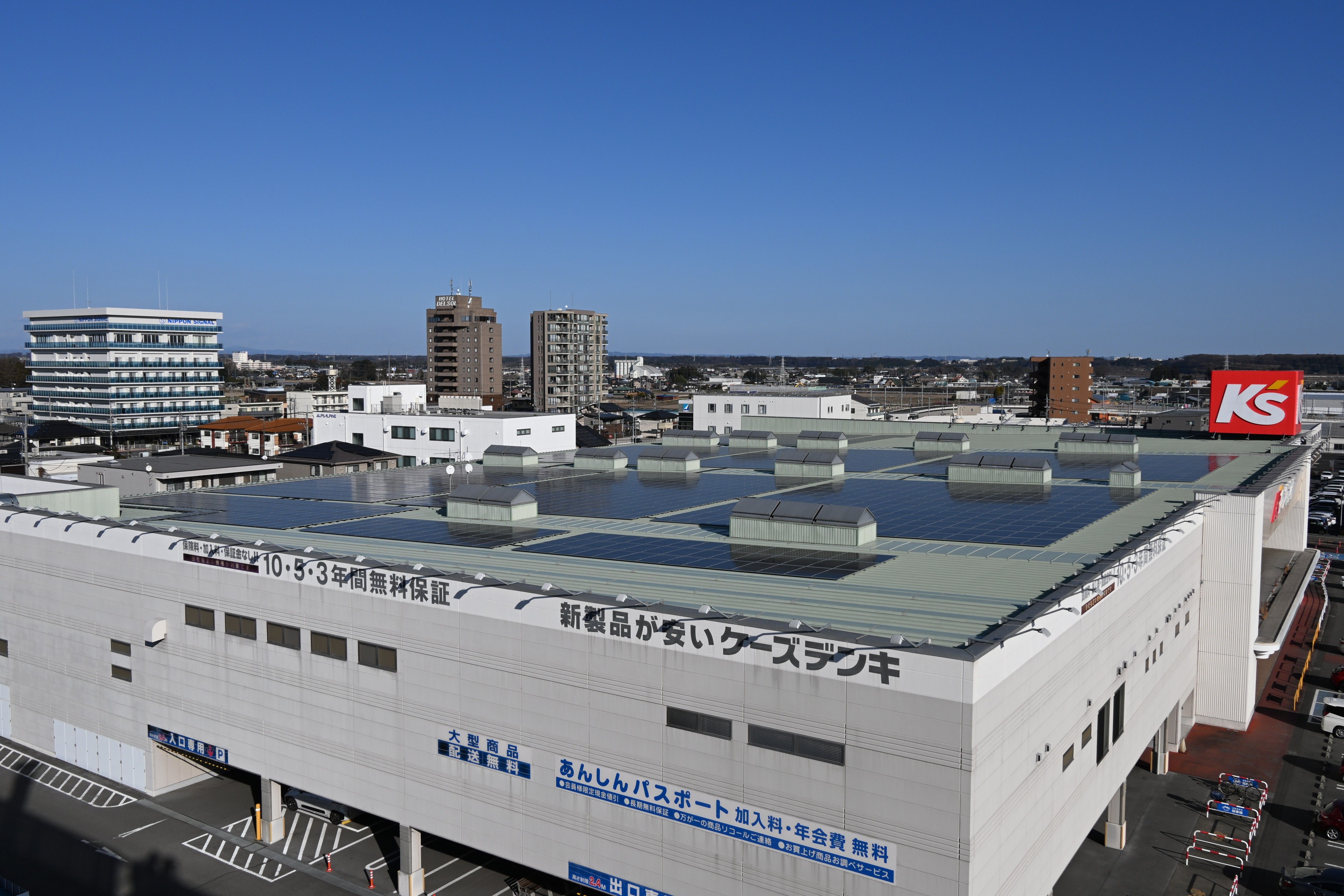 建物屋上に設置された太陽光パネル=1月中旬、宇都宮市