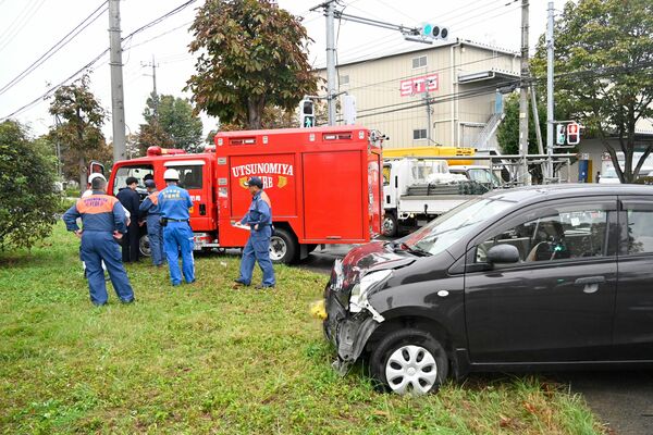 緊急走行中の消防車と衝突した車=16日午後3時10分、宇都宮市平出工業団地(画像は一部加工しています)