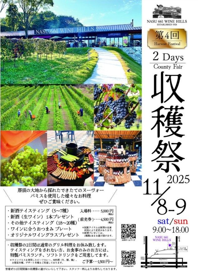 那須661ワインヒルズの「第4回収穫祭2025」のフライヤー