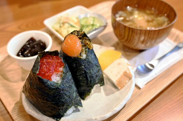 ピリ辛高菜卵黄醤油と筋子のおにぎりのランチセット
