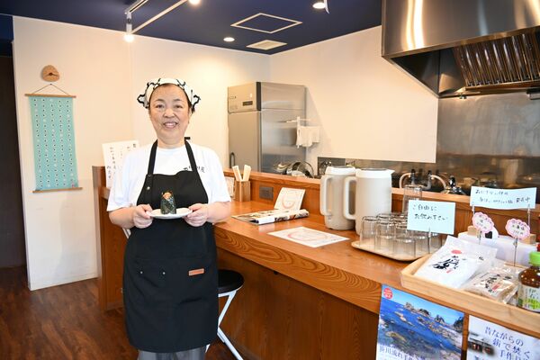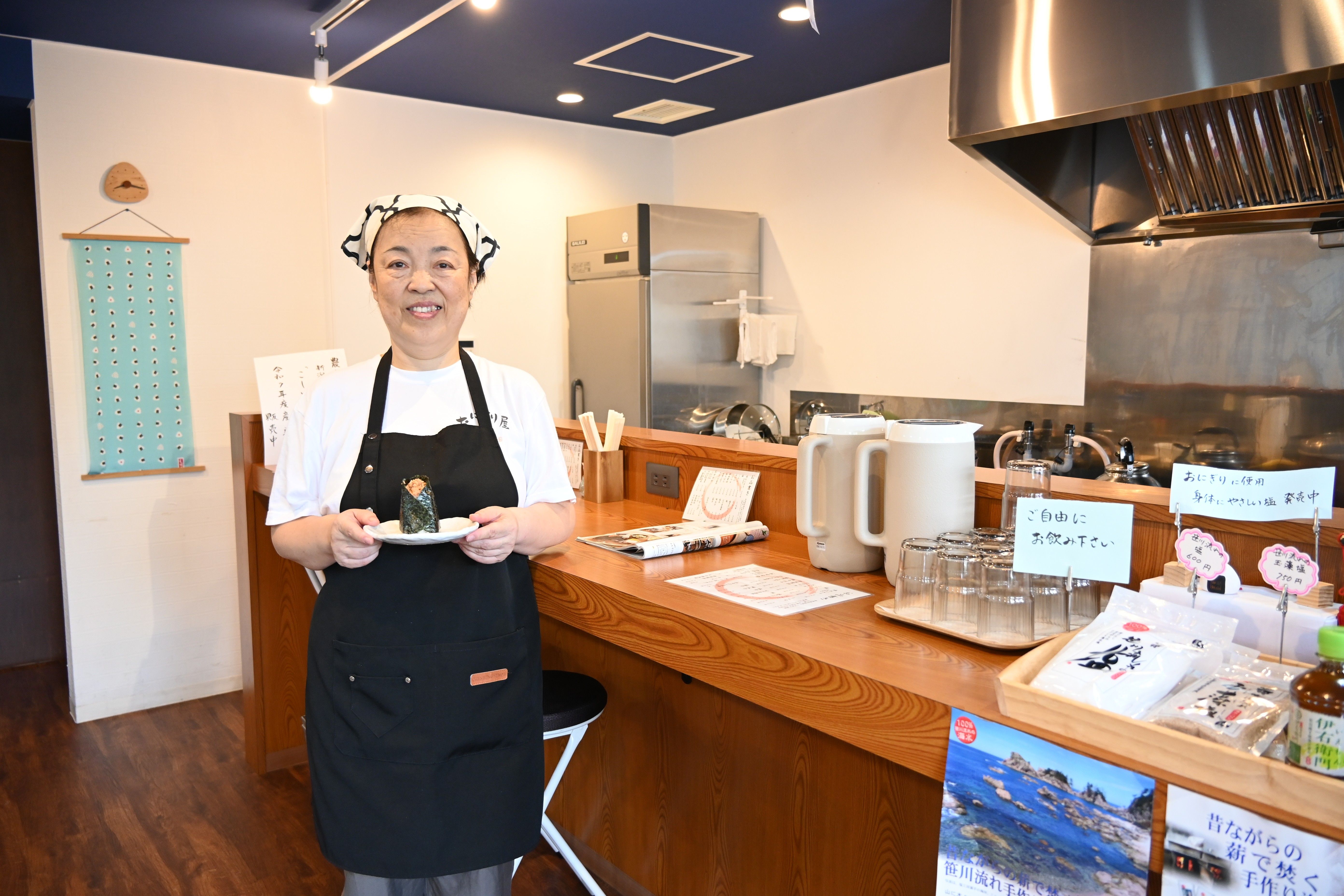 おにぎりモチーフの小物が飾られた店内に立つ店長の日下部さん