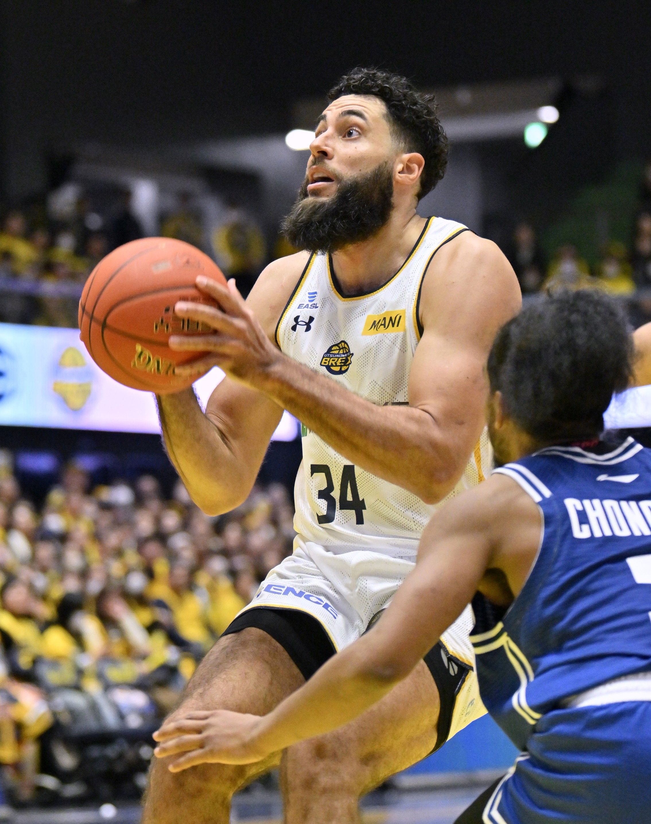 第4クオーター4分、ブレックスのジェレットがシュートを狙う=ブレックスアリーナ宇都宮、磯真奈美撮影