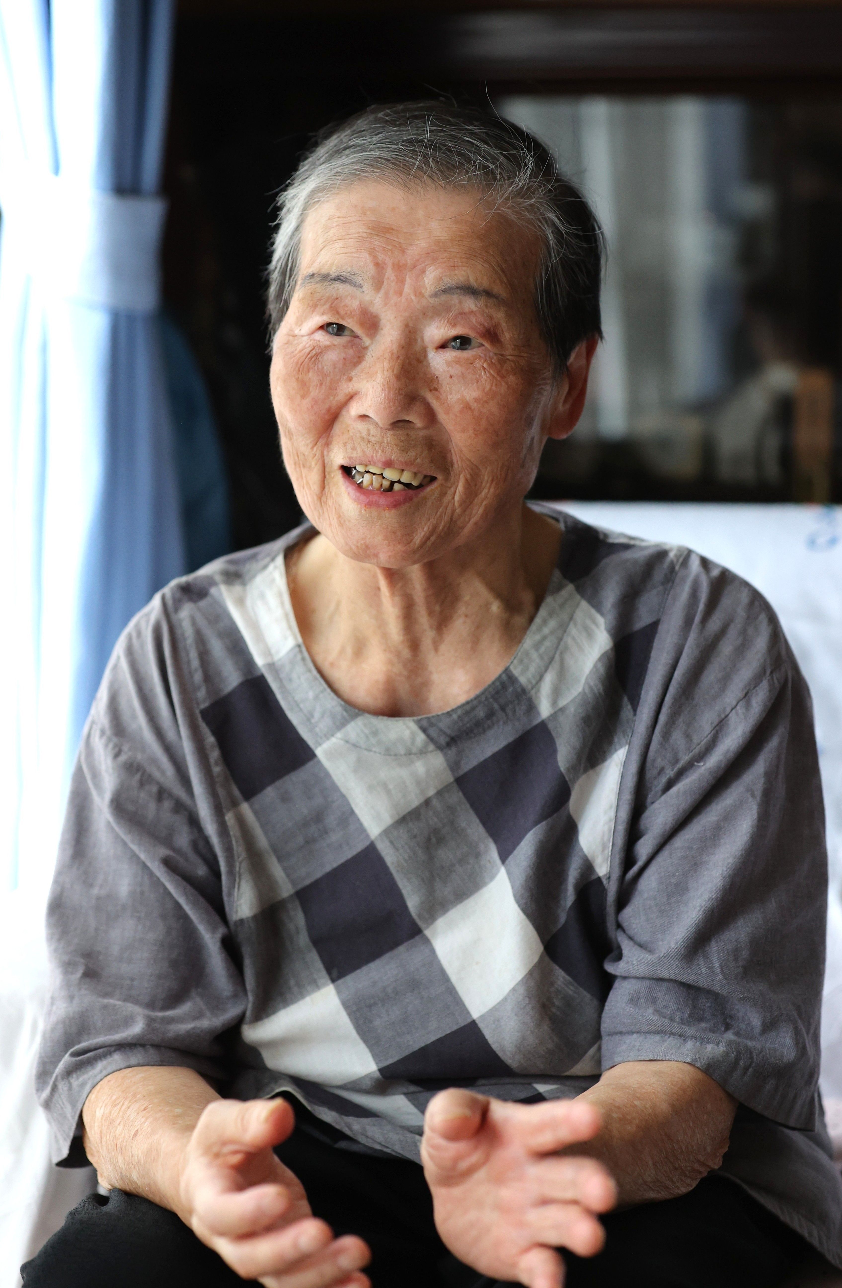 「戦争なんていいことは何もない」と話す藤原和子さん。銃弾の音が今も忘れられないという=9月8日、長野県安曇野市(中村桂吾撮影)
