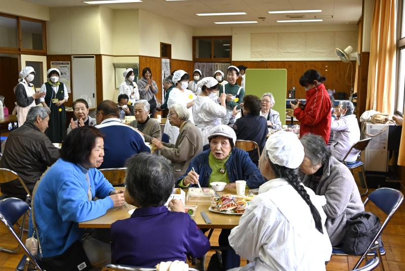 手作りのお弁当やみそ汁を楽しむ来場者ら