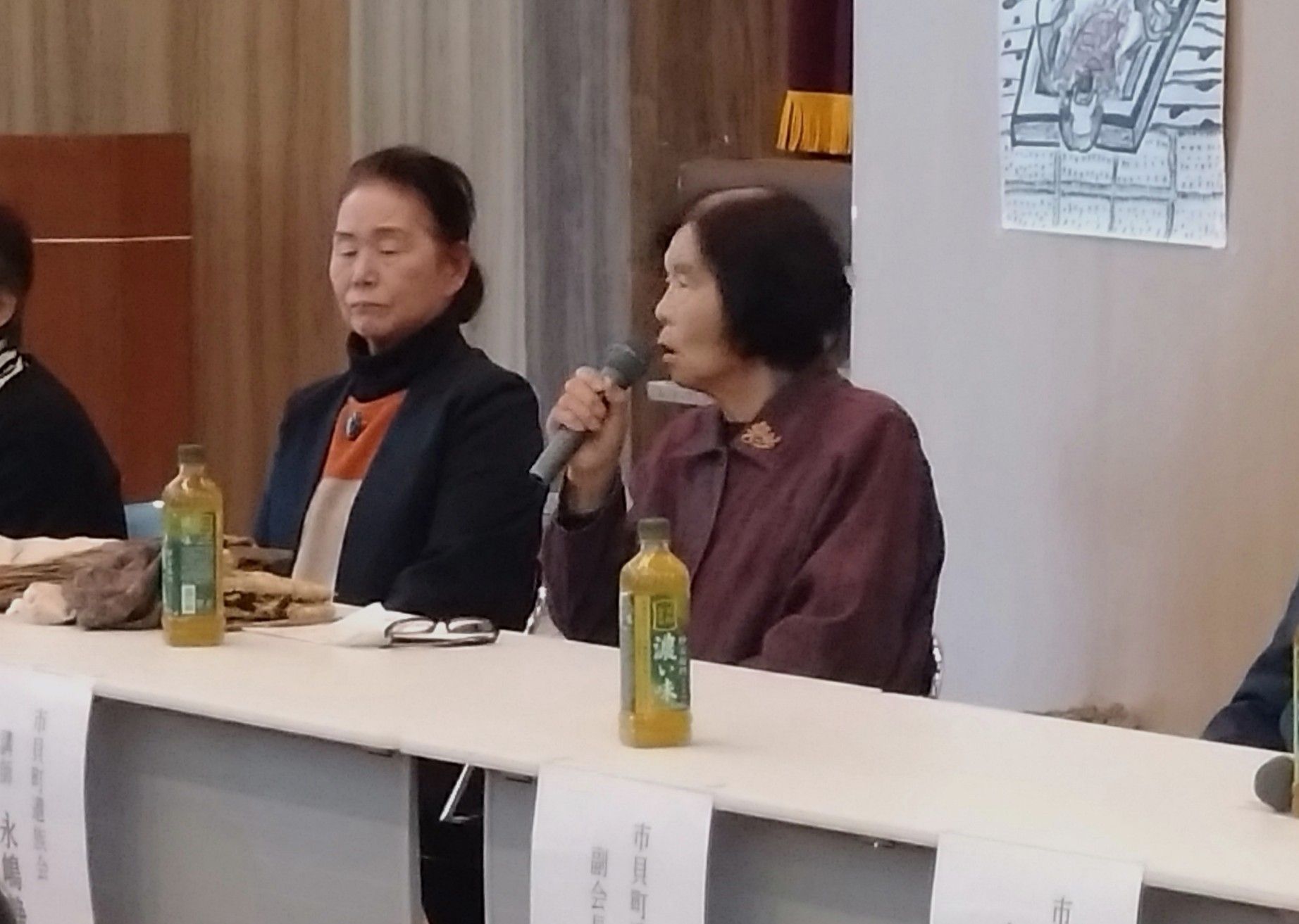 児童たちを前に戦後の貧しかった生活を語る永嶋さん(右)