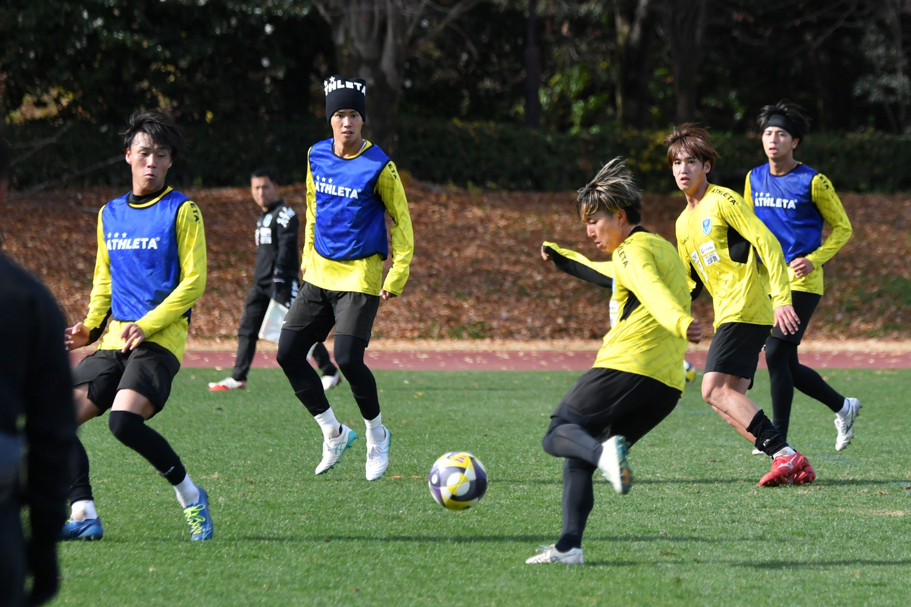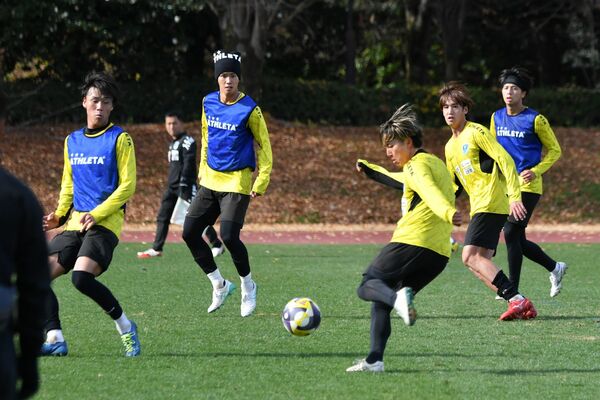 優勝の懸かる相模原戦に向けて練習に汗を流す栃木シティの選手たち=シティフットボールステーションサブグラウンド