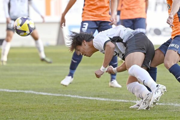 前半35分、栃木シティのFW田中パ(中央)が2点目のシュートを決める=29日午後、相模原ギオンスタジアム
