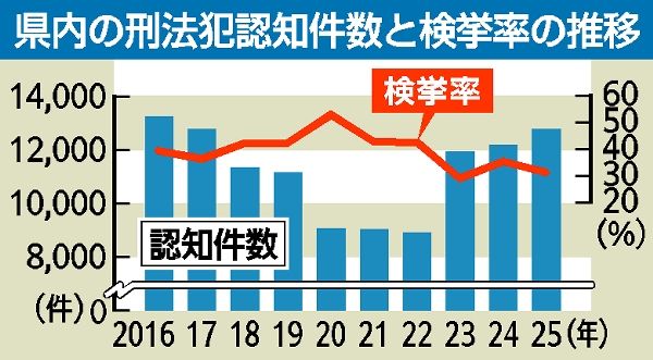 栃木県内、2025年の刑法犯1万2780件 3年連続増の「由々しき事態」 検挙率も4ポイント減少