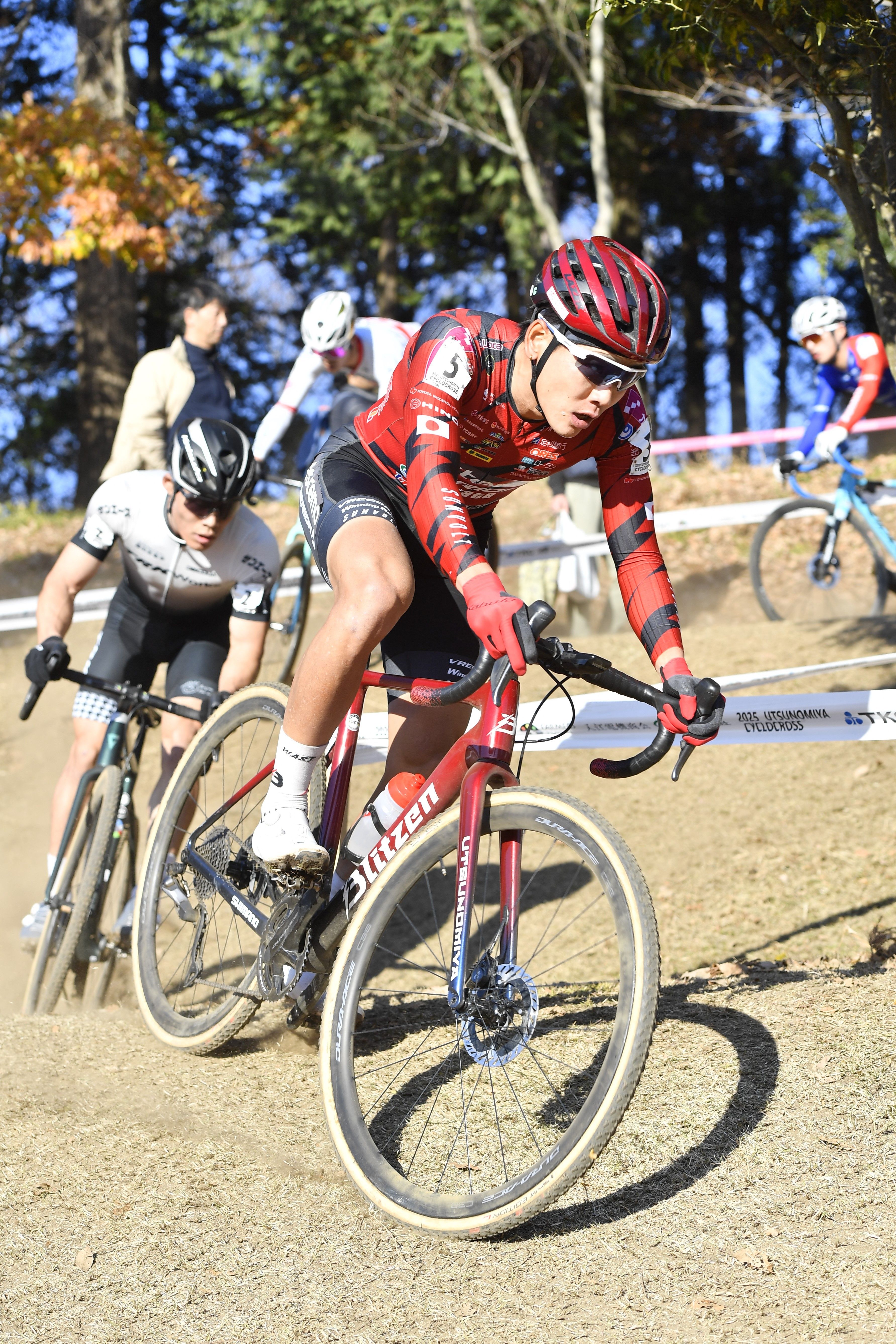 急斜面を下る沢田(ブリッツェン)=道の駅うつのみやろまんちっく村特設周回コース