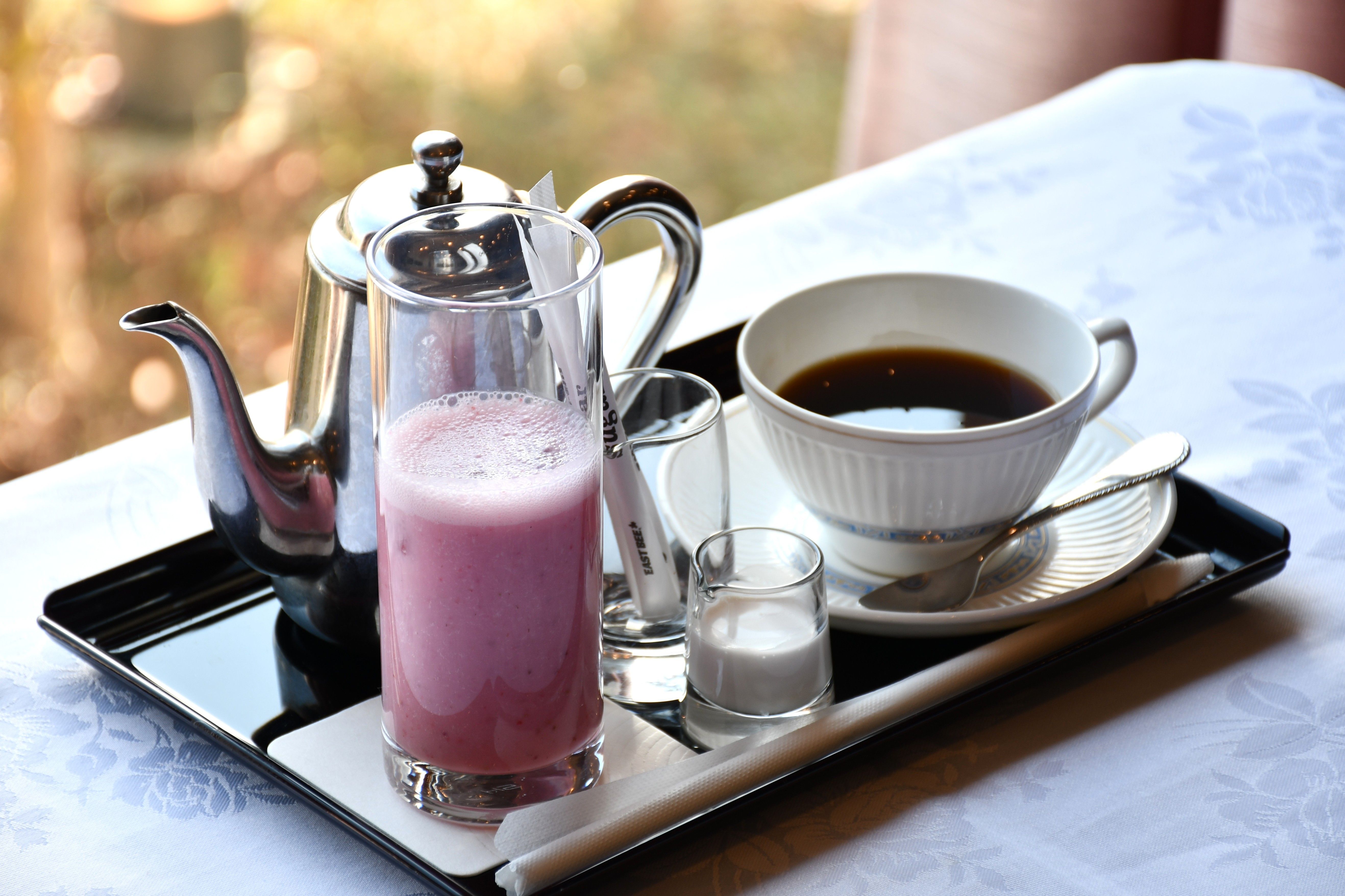 永瀬九段が午前のおやつに注文した「とちあいか」のジュースとホットコーヒー