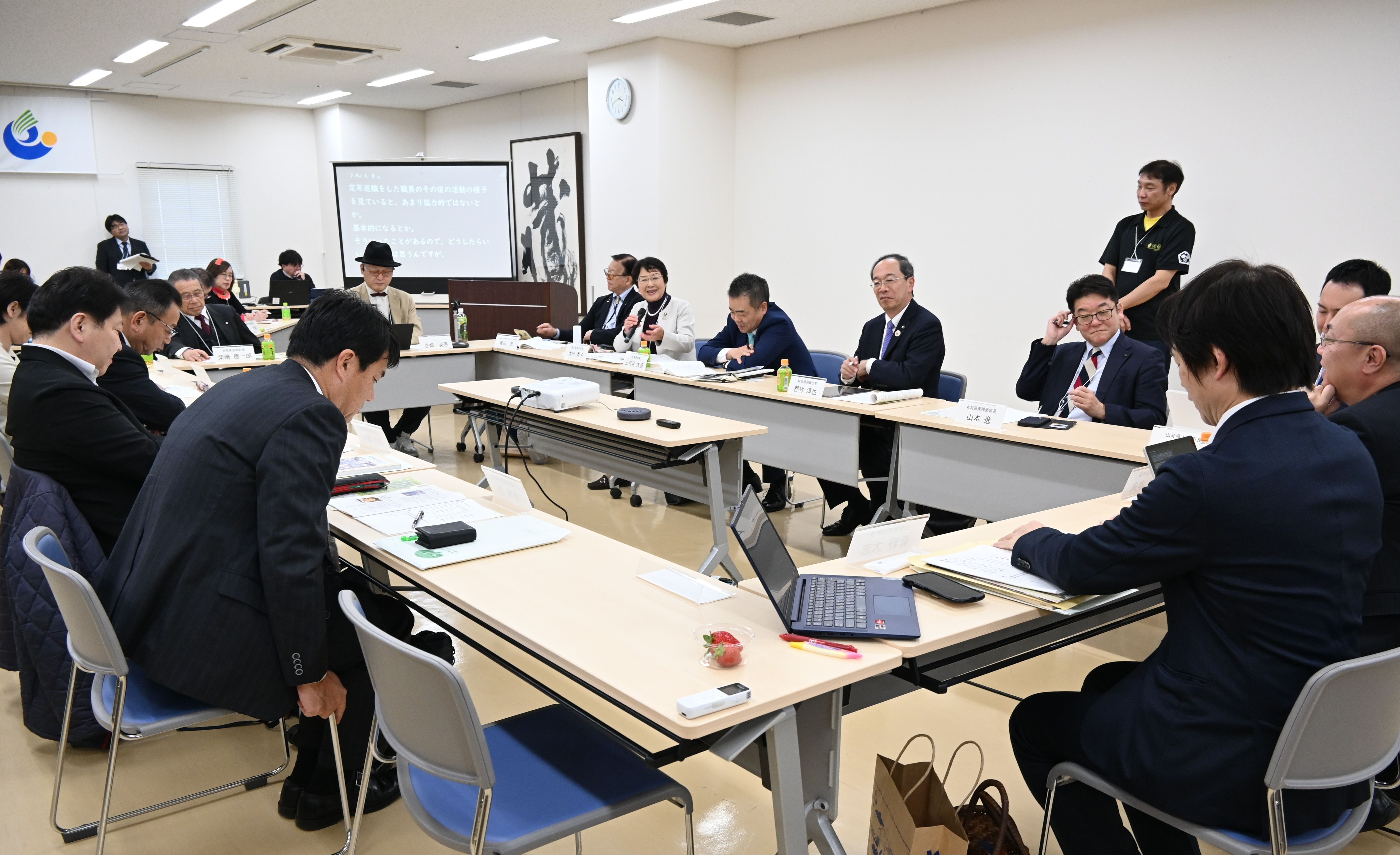 地域に飛び出す公務員の育成方法などについて意見を交わした首長会議=17日午後、栃木市役所