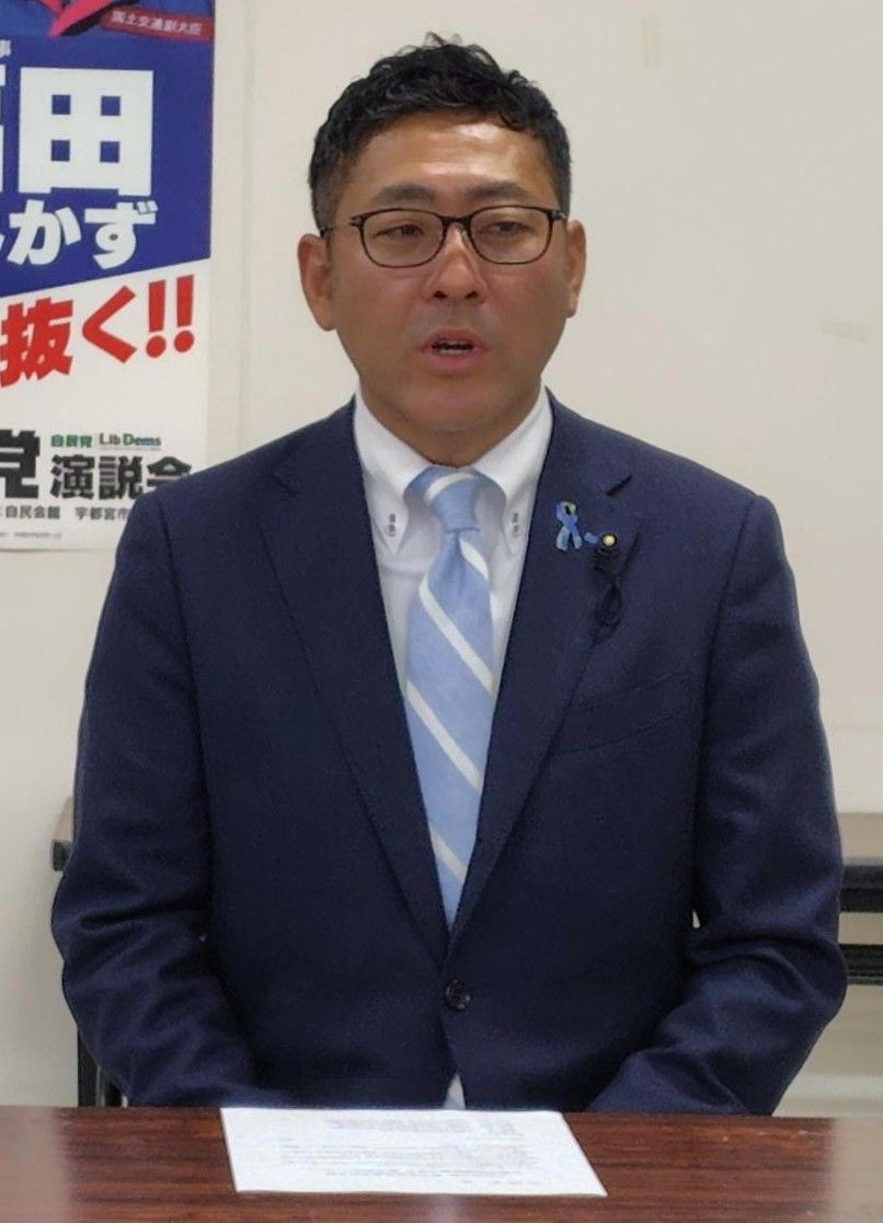 報道陣の取材に答える佐藤氏=18日午後、宇都宮市内