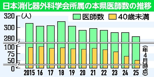 消化器外科医不足、栃木県でも 若手は10年で半減…減少の背景は? 学会県支部は県に待遇改善求める