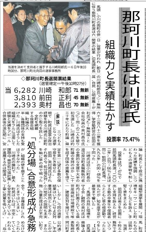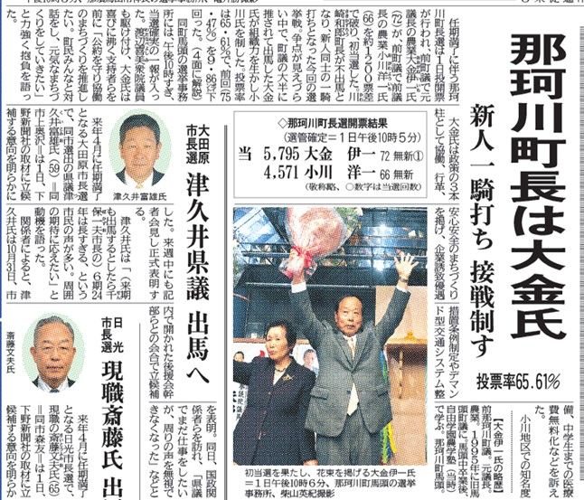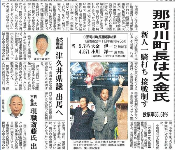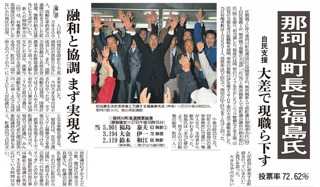 那珂川町長選の歴史を下野新聞記事で振り返る 2002年以降、合併前含め全7回《解説記事あり》