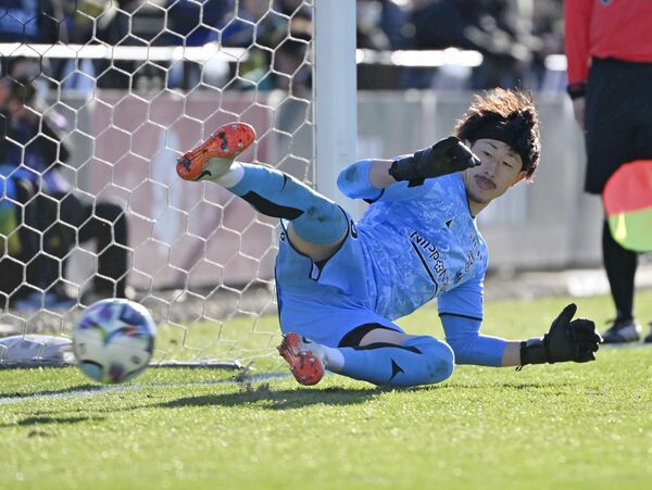 PK戦で相手に決勝のシュートを許す栃木シティのGK児玉=CFS、森田大地撮影