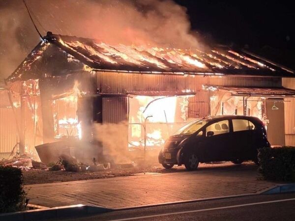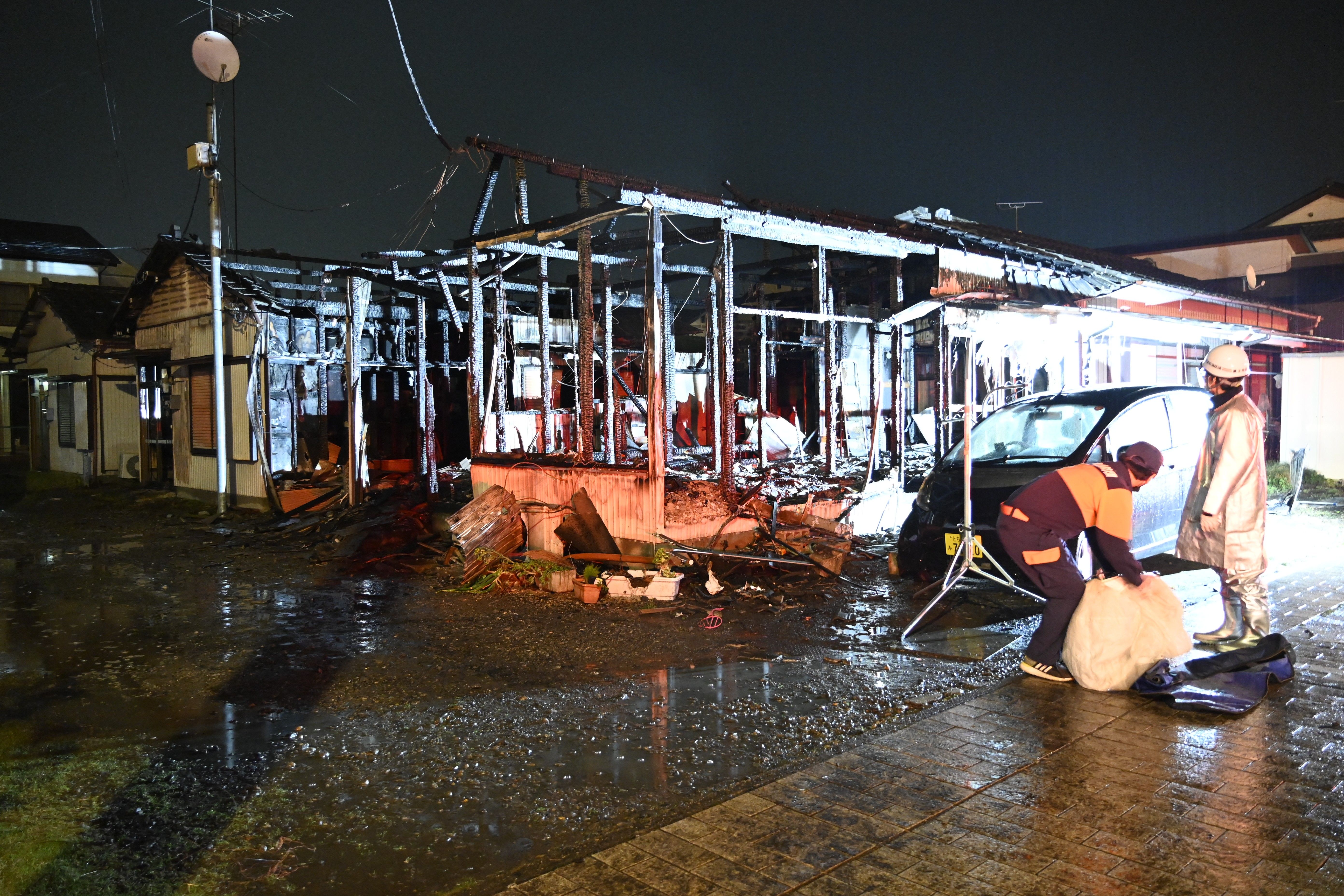 貸家が燃えた火災現場=10日午前0時25分、野木町丸林