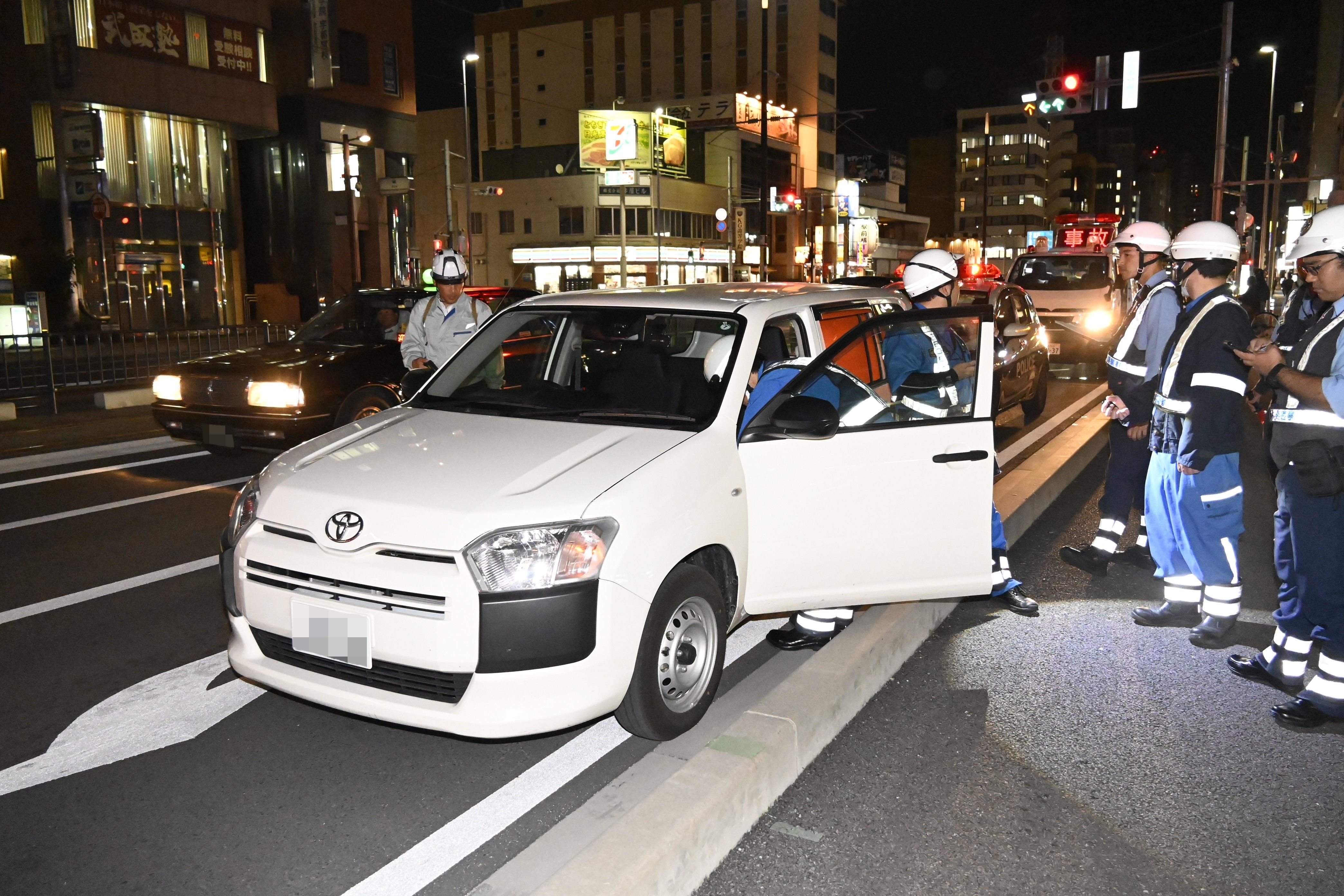 LRTと衝突した乗用車=10日午後5時55分、宇都宮市東宿郷2丁目(画像は一部加工しています)