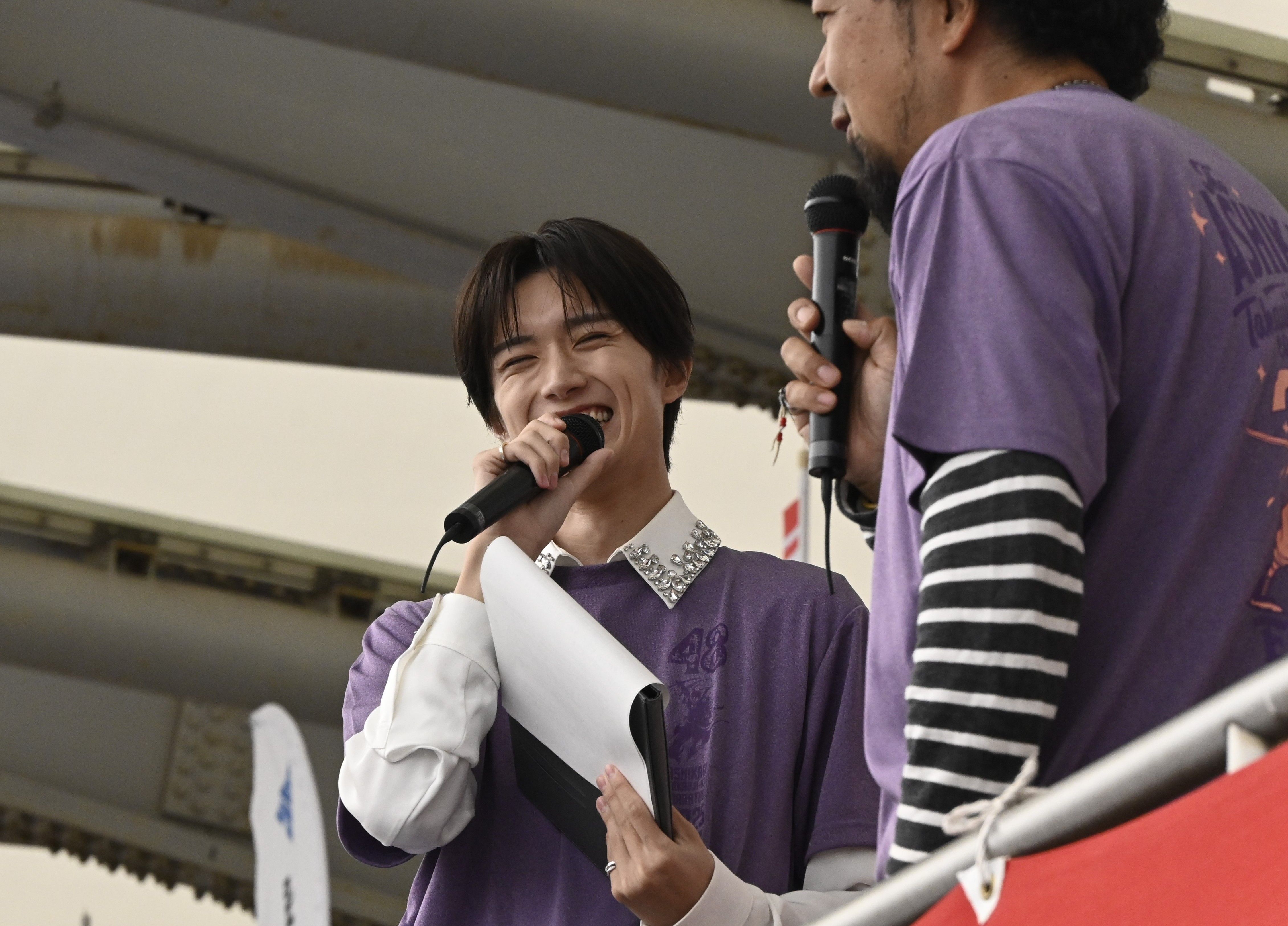 餃子をほおばる来場者=1日午前10時40分、宇都宮市本丸町
