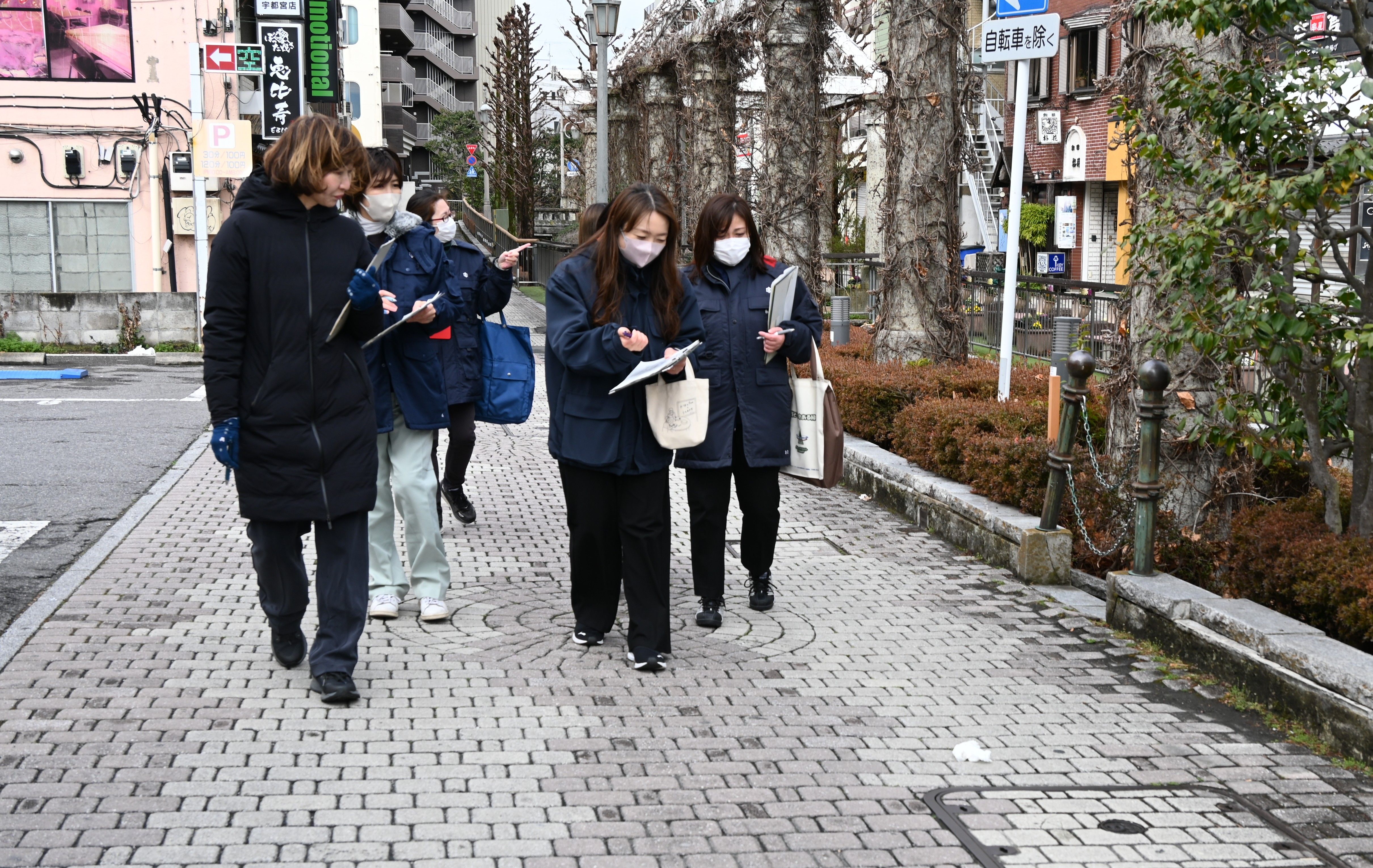 道路の状況をチェックするフィールドワークの参加職員