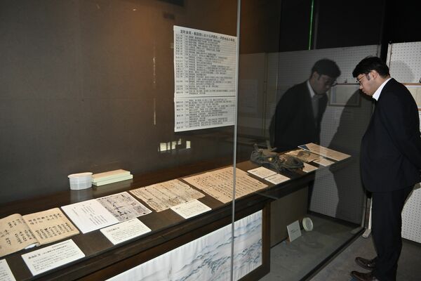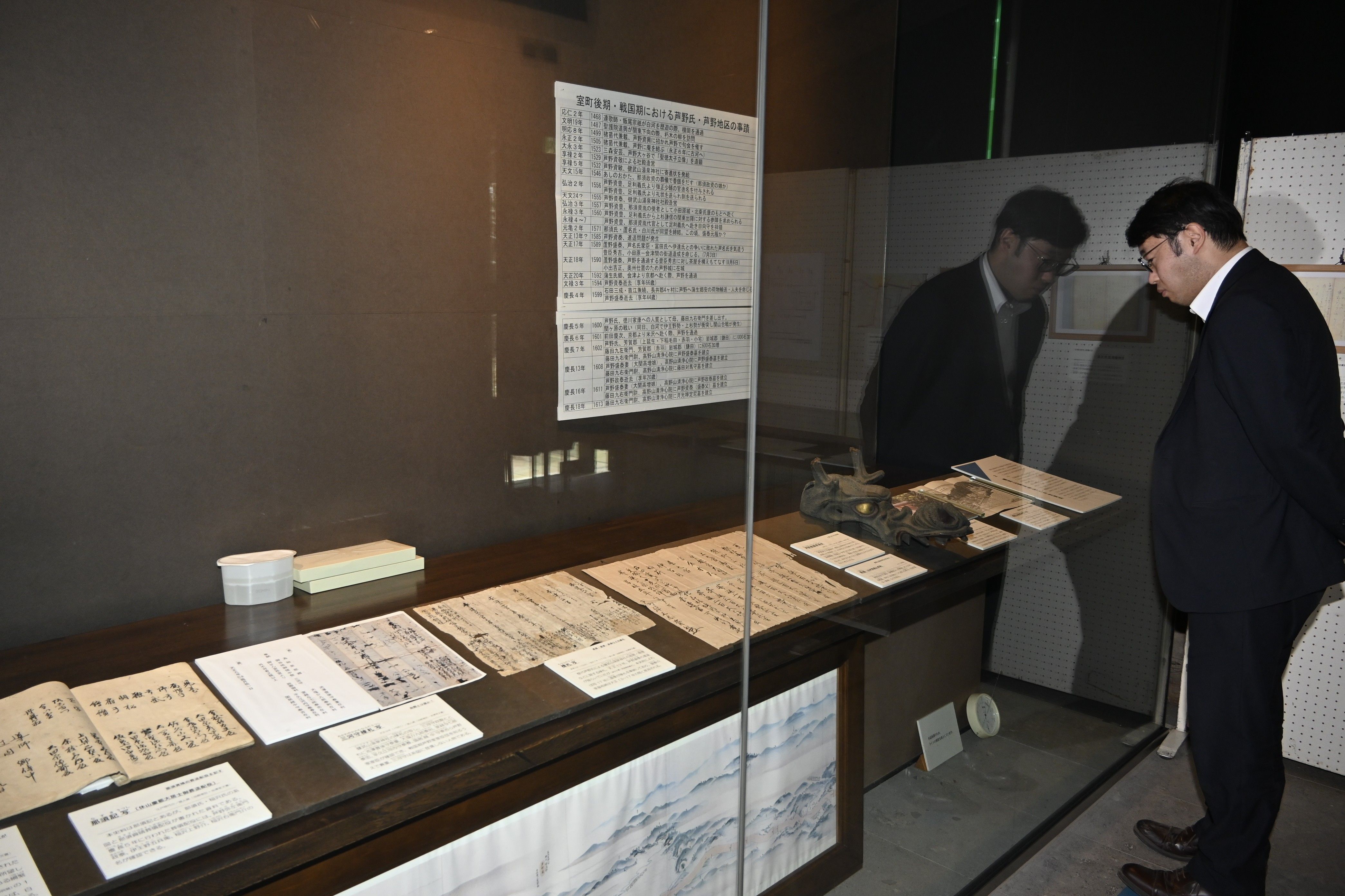 芦野氏や芦野地区関連の史料が並ぶ会場