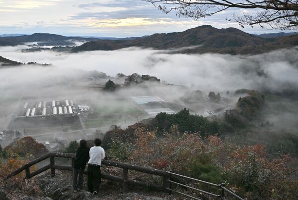鎌倉山周辺の集落を覆った雲海=18日午前6時5分、茂木町九石