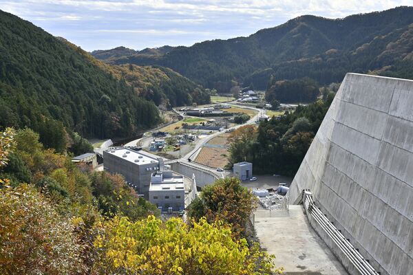 南摩ダム下流で建設が進む揚水機場や水力発電設備