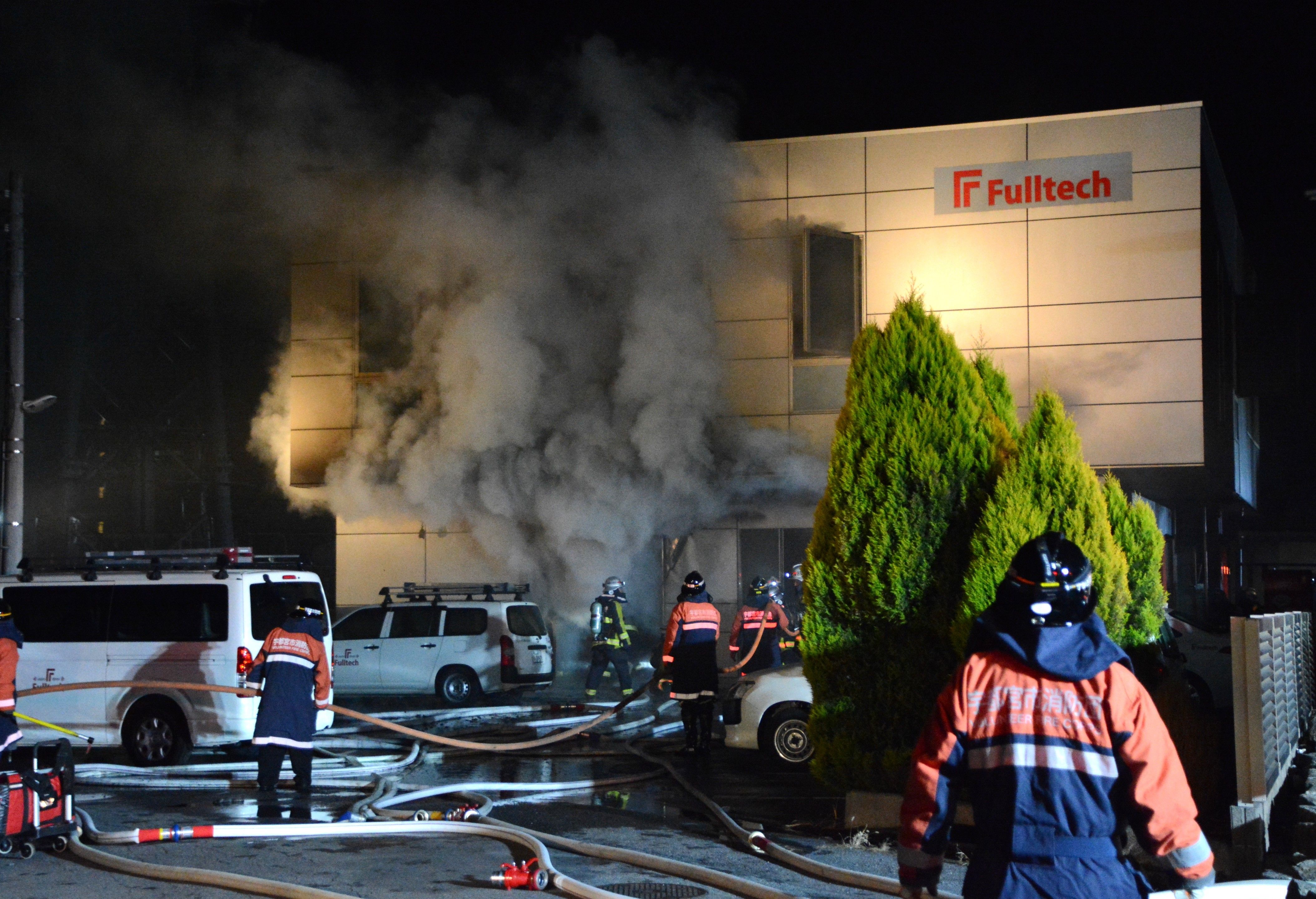 2階建て建物が焼けた火災現場=11日午後8時10分、宇都宮市滝の原1丁目