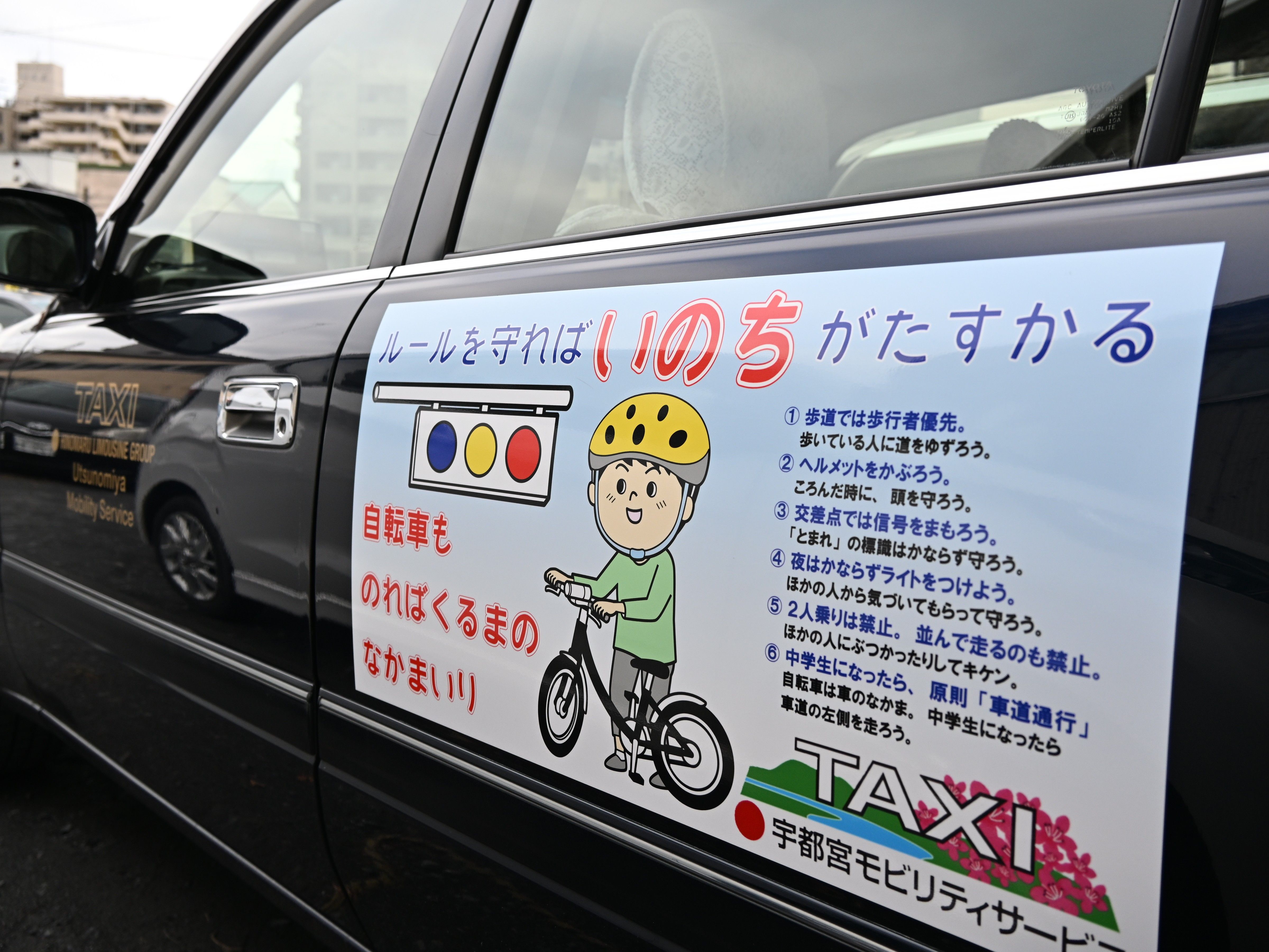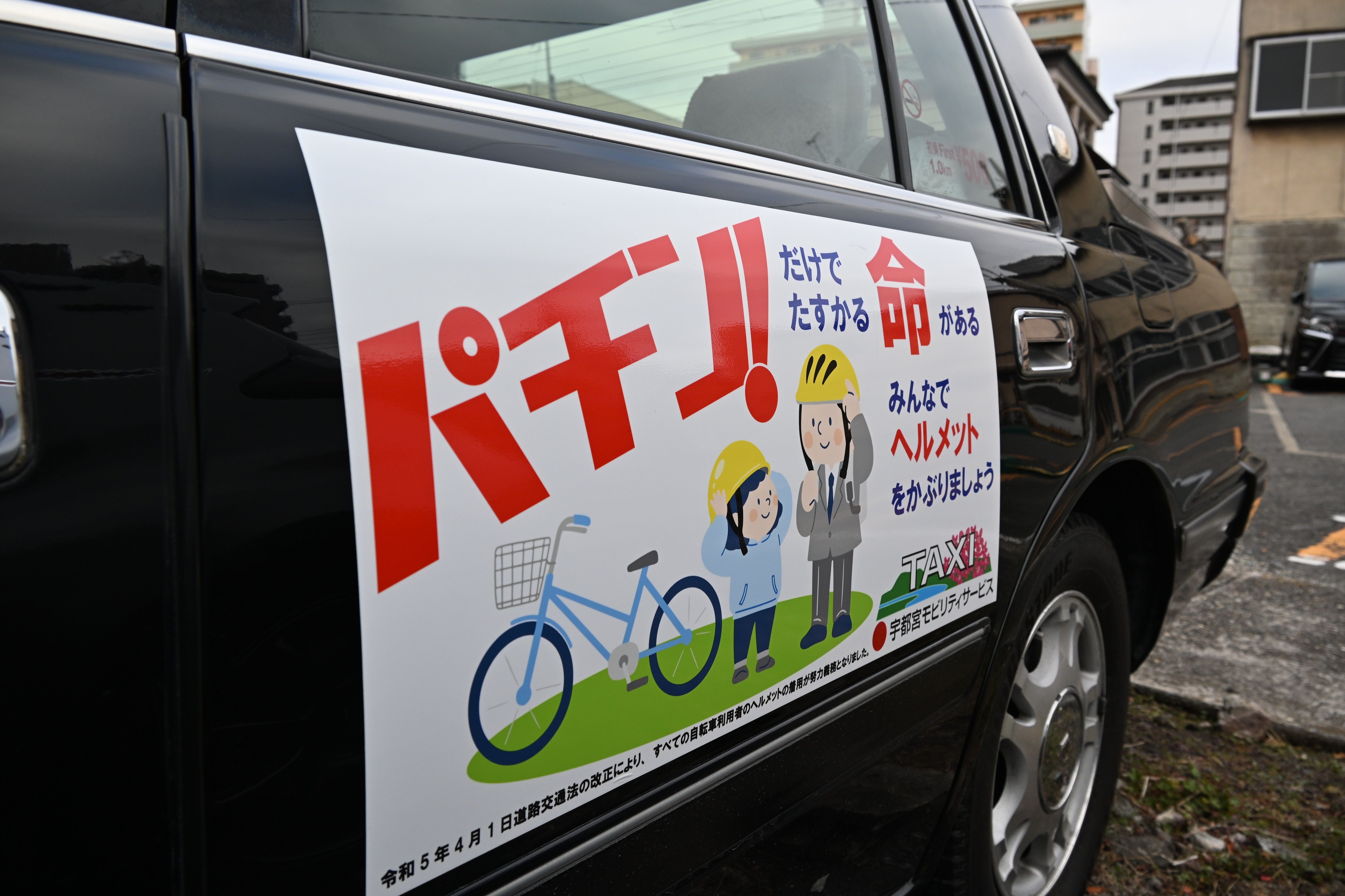 ヘルメット着用を促す車両ラッピング