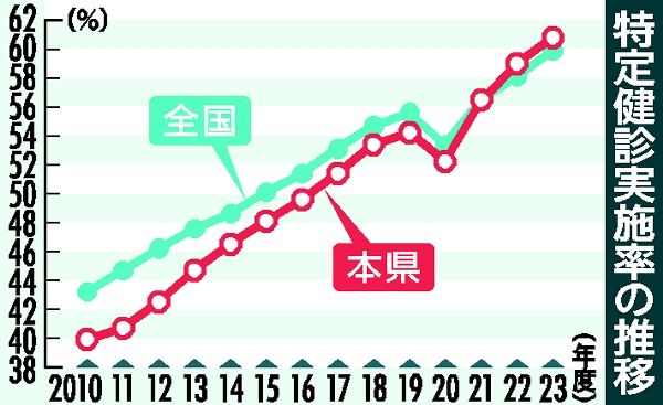 栃木県の特定健診実施率、初めて6割超える 2023年度、特定保健指導実施率も最高 目標とは開き