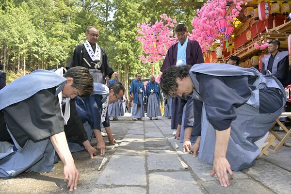 熱気あふれる花家体の繰り込み=17日午前11時30分、日光市山内、永嶌理絵撮影