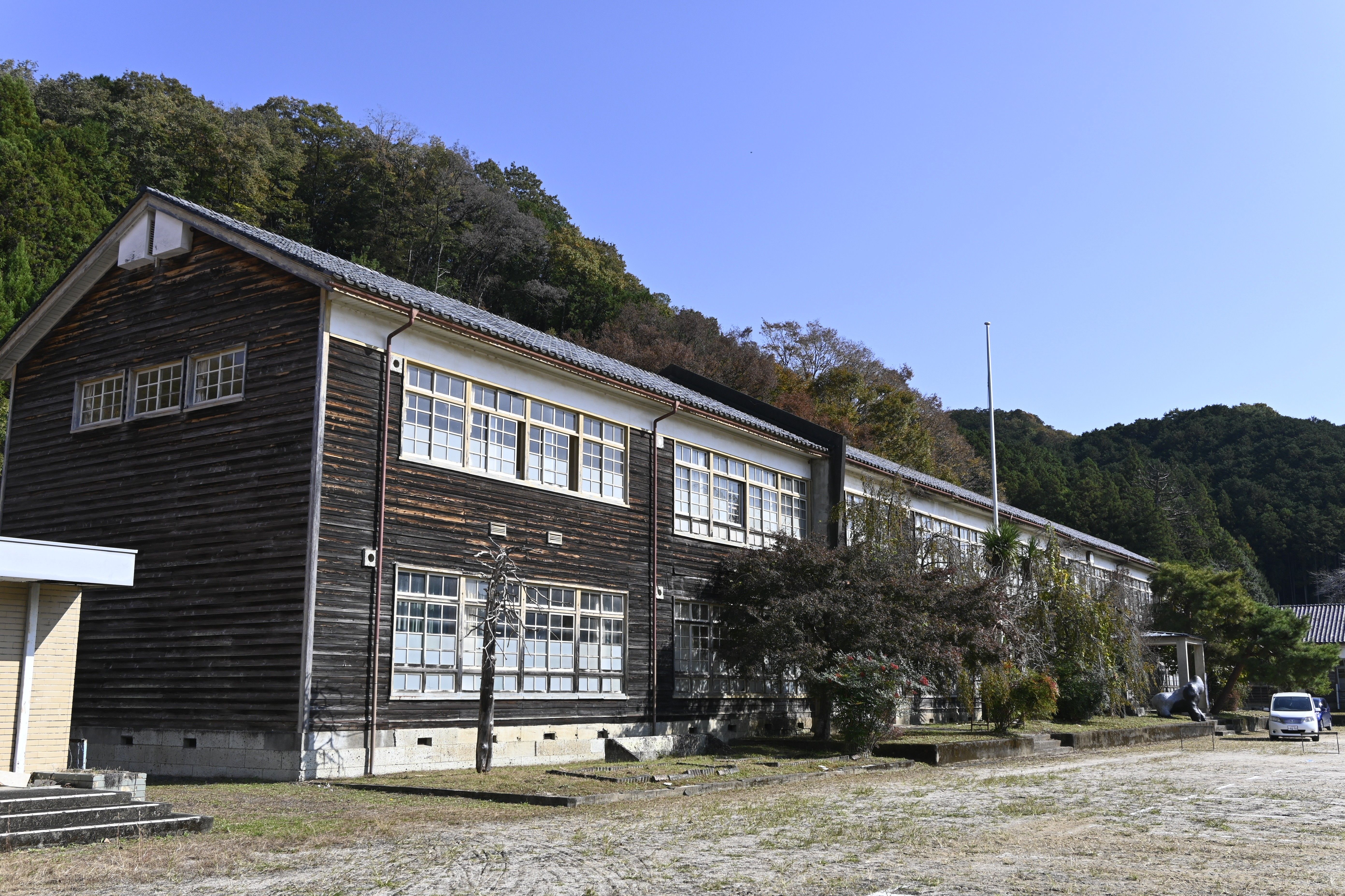 旧粟野中学校校舎(鹿沼) 国登録・昭和時代 林業の町伝える木造校舎 芸術イベントの舞台に