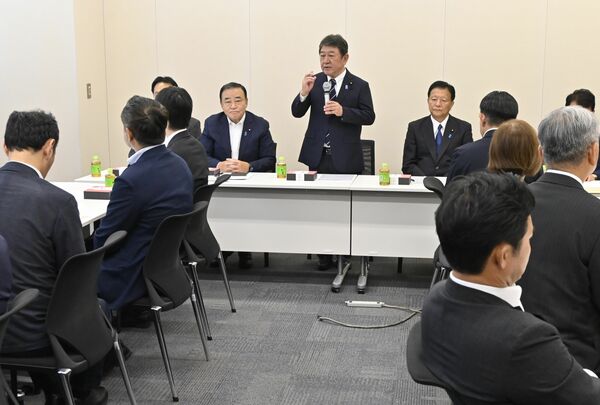 会合の冒頭であいさつする茂木氏(中央)=18日午後、衆院第1議員会館