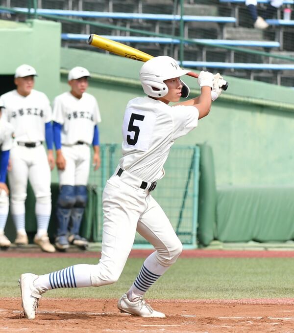 7回、宇工の増川が逆転の3点適時三塁打を放つ=清原、内藤大地撮影