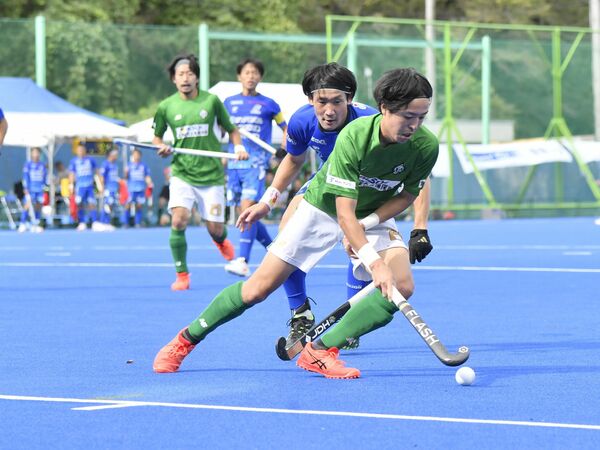 第4クオーター11分、リーベのMF村田が敵陣深くまで攻め上がる=今市青少年スポーツセンター人工芝競技場、鈴木航撮影