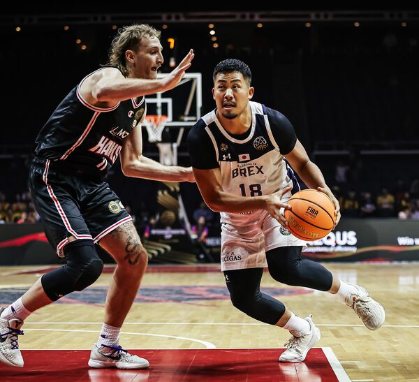 5位決定戦 ゴールにアタックするブレックスの鵤=シンガポールインドアスタジアム(FIBA提供)