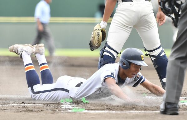 2回、栃工の谷部が先制の本塁生還=エイジェック、湯田大士撮影