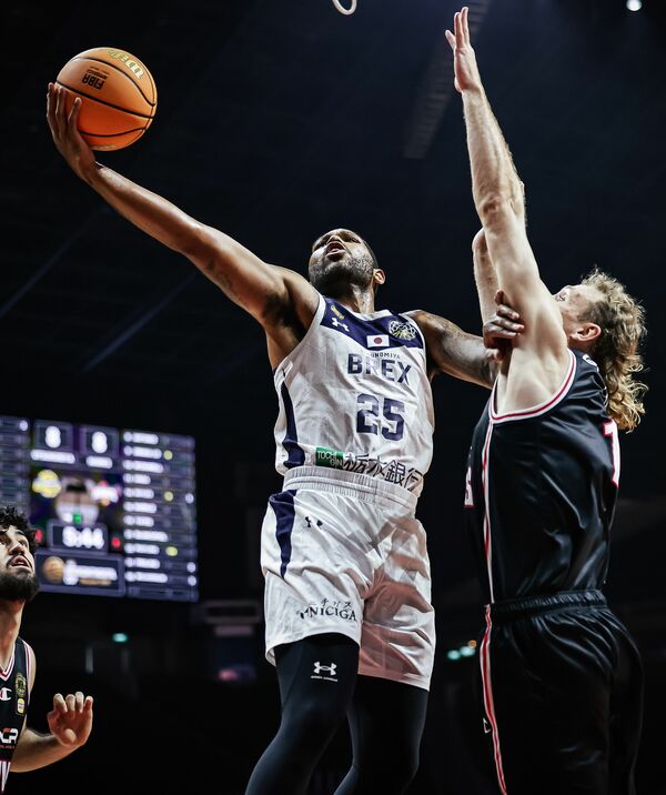 5位決定戦 レイアップシュートを放つブレックスのニュービル=シンガポールインドアスタジアム(FIBA提供)